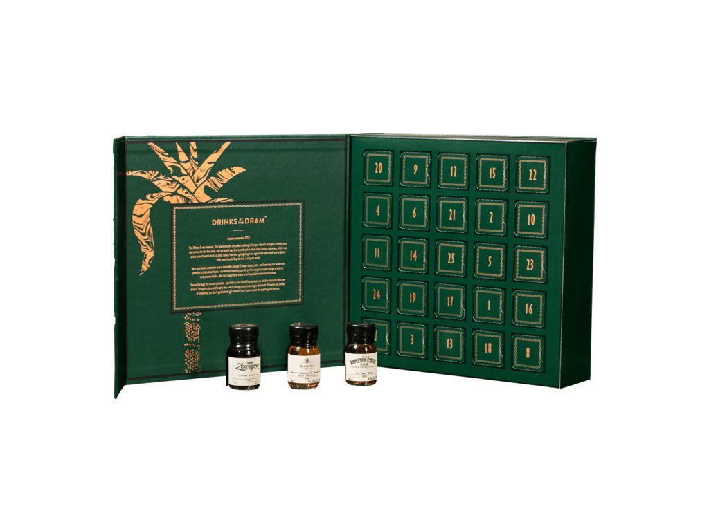 The Rum Advent Calendar 2025 od Drinks by The Dram zmení každý večer decembra na malú rumovú degustáciu.