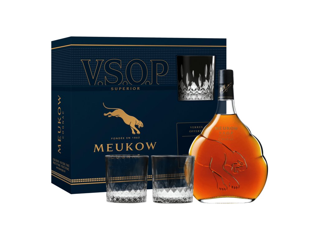 Doprajte si kvalitný francúzsky koňak Meukow VSOP Superior v elegantnom darčekovom balení s dvomi pohármi z brúseného skla!