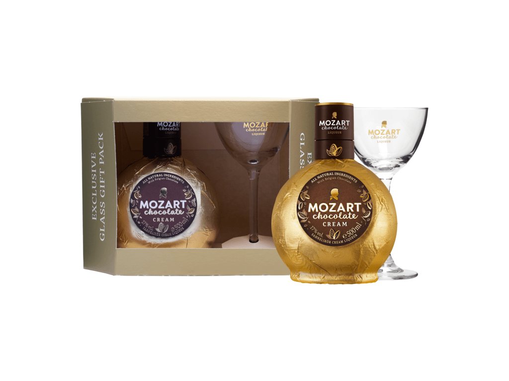 Vychutnajte si obľúbený krémový čokoládový likér Mozart z Coupette poháriku, ktorý je súčasťou balenia.