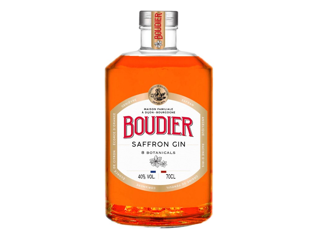 Saffron Gin sa vyrába v Dijone vo Francúzsku v liehovare Gabriela Boudiera. Gin bol uvedený na trh v roku 2008. Pri jeho výrobe sa kladie veľký dôraz na ručné remeselnícke spracovanie. Vyrába sa v tradičných medených kotloch v malých dávkach. Saffron Gin je vyrobený z deviatich čerstvých rastlín ako sú: jalovec, koriander, citrón, pomarančová kôra, semená angeliky, kosatec, fenikel a šafran. Byliny sú macerované v pšeničnom destiláte pred samotnou destiláciou, čo najlepšie odzrkadľuje štýl londýnskeho suchého ginu. Majstri blenderi veria, že macerovanie rastlín dokopy je jedinečné, kdežto separátnou destiláciou by želaný efekt strátil účinok. Jedine najvzácnejšie korenie sveta – šafran sa pridáva na záver, kvôli farbe a exotickému vyfarbeniu chutí (150.000 kvetov šafranu = 1kg suchého korenia).