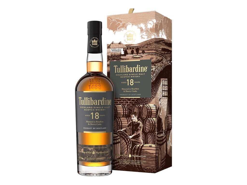 Tullibardine 18 ročná dozrievala v kombinácii ex-bourbon a ex-sherry sudov po dobu dlhú 18 rokov.
