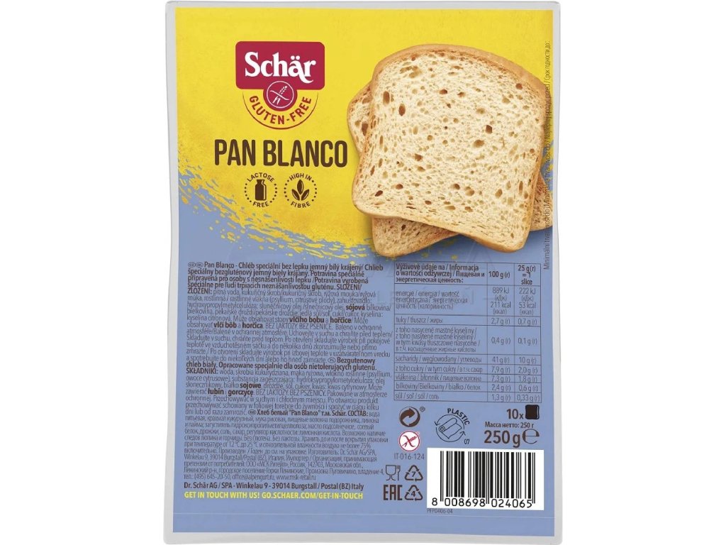 Mäkký, svetlý bezlepkový nakrájný chlieb, ktorý je vhodný na priamu konzumáciu alebo na zapekanie. Neobsahuje lepok, pšenicu, laktózu, mlieko, vajcia, palmový olej a konzervačné látky.