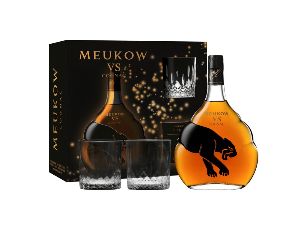 Darčekové balenie obsahuje Meukow VS 0,7l a 2 poháre.
