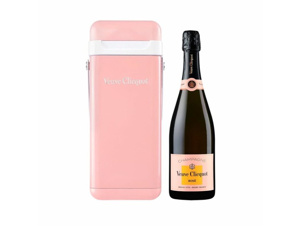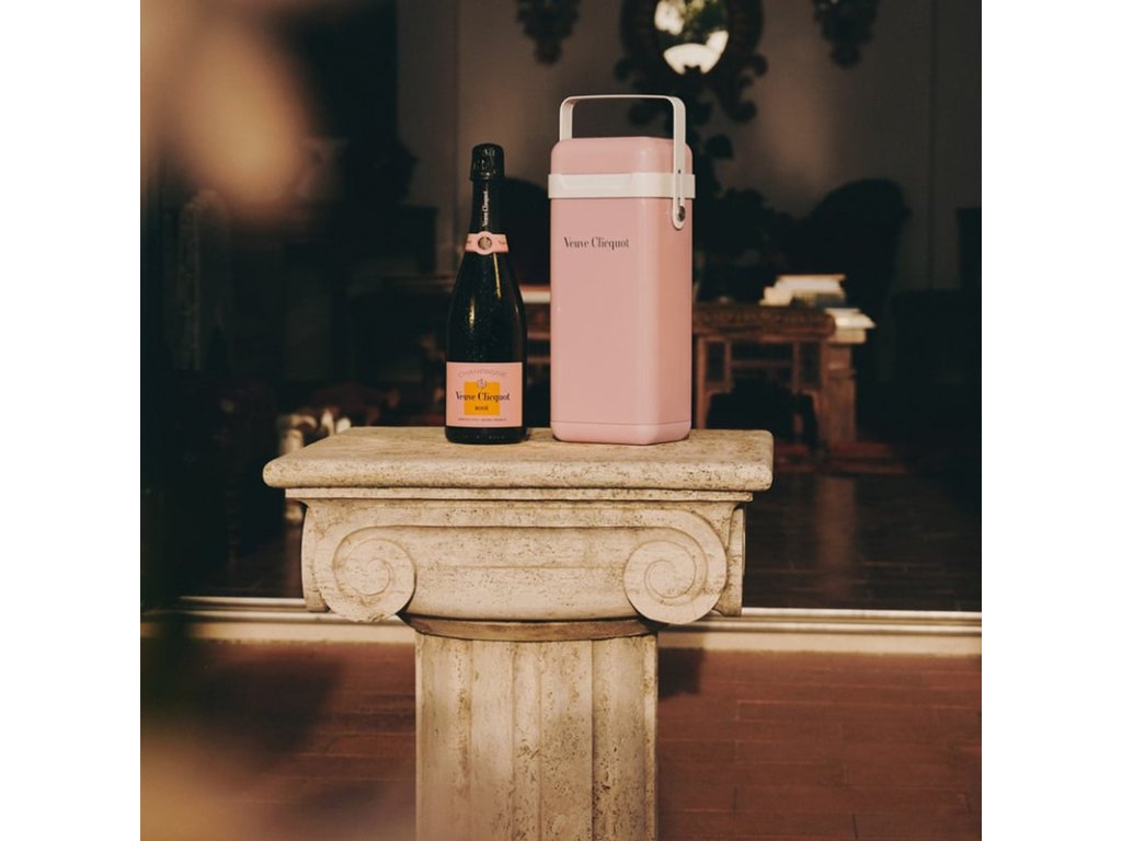 Toto balenie obsahuje fľašu šampanského Veuve Clicquot Yellow Label a originálny ružový chladiaci box.