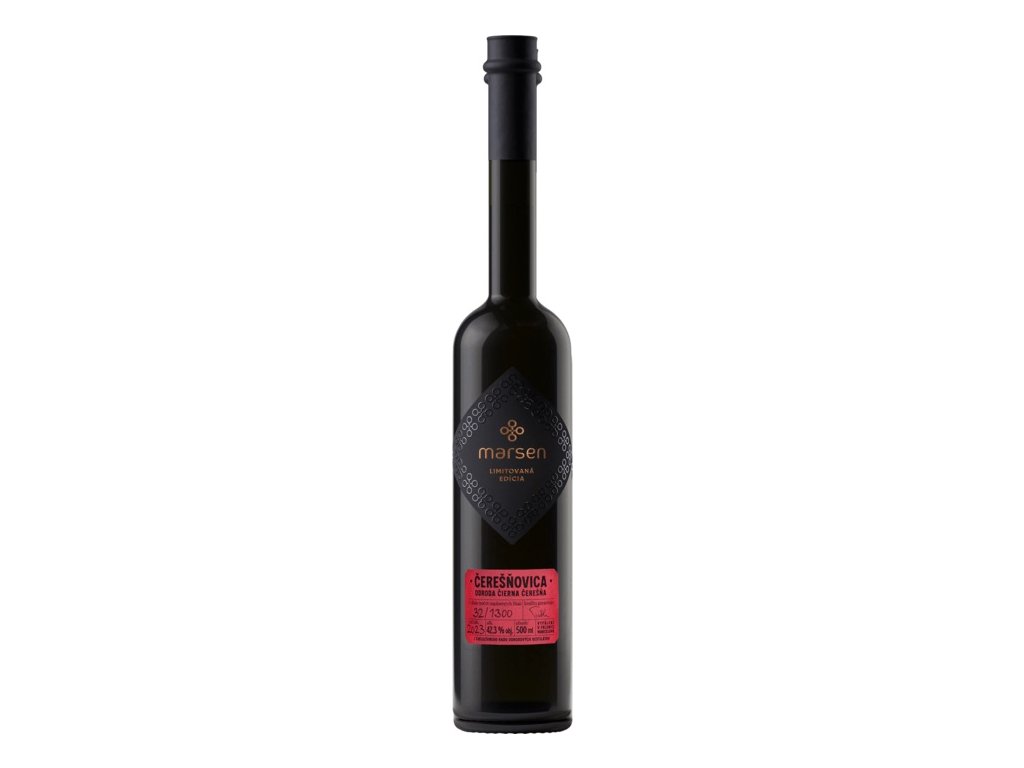 Marsen Čerešňovica odroda Čierna čerešňa je exkluzívny odrodový destilát ročníka 2023, ktorý bol vyrobený iba v limitovanom počte 1300 individuálne očíslovaných fliaš.