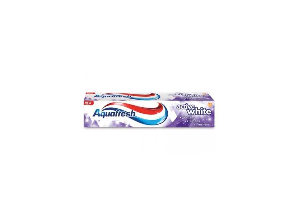 Zubná pasta Aquafresh Active White s bieliacim účinkom je vhodná pre všetkých členov rodiny. Obsahuje minerály, ktoré posilňujú zuby, chránia ich pred zubným kazom, zabraňujú povlaku, čím ochraňujú vaše ďasná a udržujú svieži dych. Používajte 2krát denne. Pred použitím odstráňte ochrannú fóliu. Uchovávajte mimo dosahu detí.