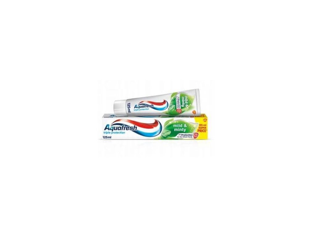 Zubná pasta Aquafresh Mild & Minty s jemnou príchuťou je vhodná pre všetkých členov rodiny. Obsahuje minerály, ktoré posilňujú zuby, chránia ich pred zubným kazom, zabraňujú povlaku, čím ochraňujú vaše ďasná a udržujú svieži dych. Používajte 2krát denne. Pred použitím odstráňte ochrannú fóliu. Uchovávajte mimo dosahu detí.