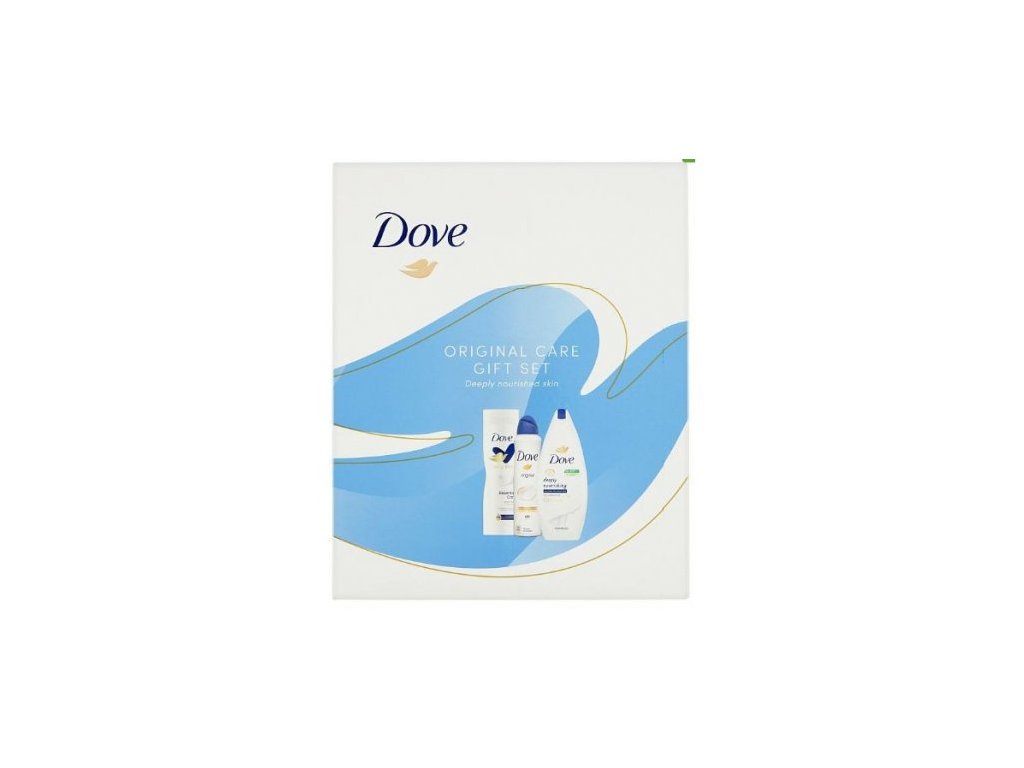 Dove dámsky darčekový set obsahuje sprchový gél Original 225ml +telové mlieko Essential 250ml+deodorant Original 150ml.