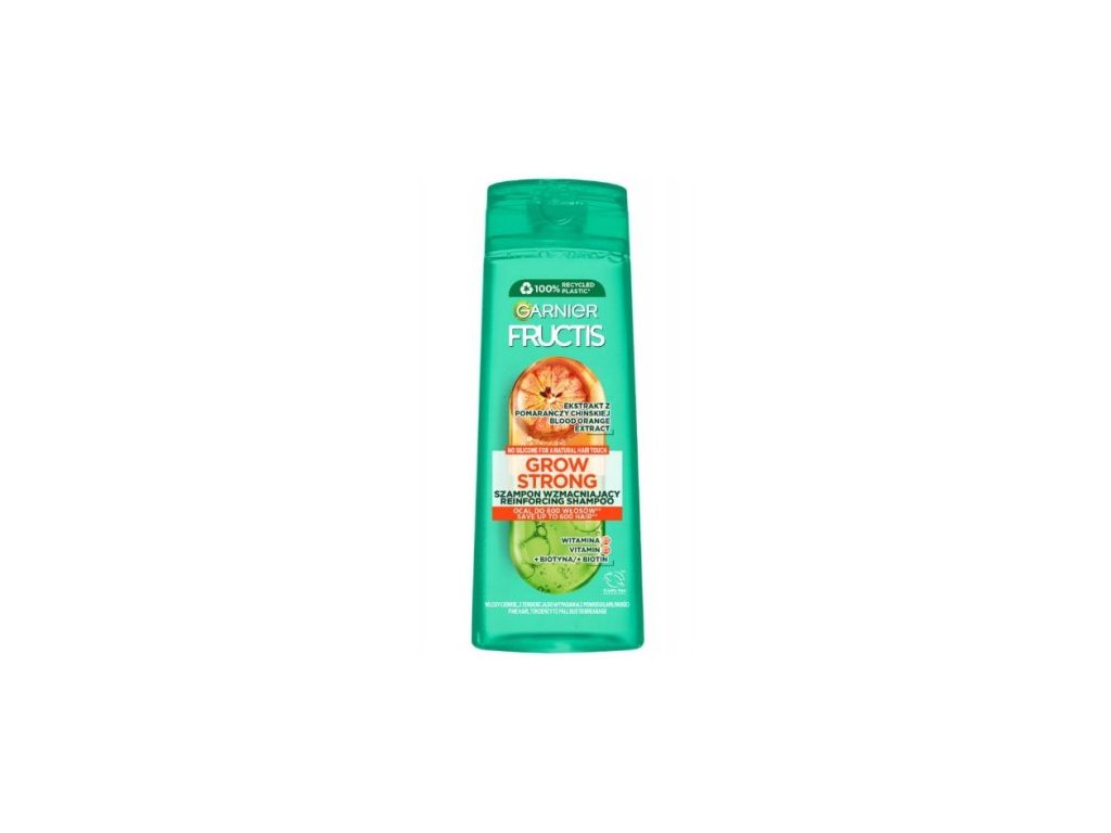 Fructis kombinuje silu ovocných extraktov s aktívnymi zložkami: extraktom z čínskeho pomaranča, ovocia bohatého na vitamíny, na posilnenie vlasových vlákien, derivátom vitamínu C a biotínom na posilnenie vlasov od korienkov až ku končekom. Objavte vitamínovo obohatený šampón Garnier Fructis Grow Strong Orange na posilnenie jemných vlasov a zachráňte až 600 vlasov za mesiac.