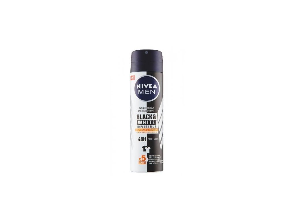 Antiperspirant v spreji Black & White Invisible Ultimate Impact je určený mužom, ktorým poskytuje spoľahlivú ochranu proti poteniu bez zanechania bielych stôp na čiernom a žltých škvŕn na bielom oblečení. Príjemná svieža vôňa neobsahuje alkohol ani farbivá a efektívne ochráni pred potom až po celých 48 hodín. Dlhotrvajúca účinnosť 5× proti: poteniu, zápachu, bielym stopám, žltým škvrnám a podráždeniu pokožky. Umožňuje mužom cítiť sa celý deň svieži a čistí. Zaobstarajte si antiperspirant, ktorý vás bude spoľahlivo sprevádzať celým dňom!