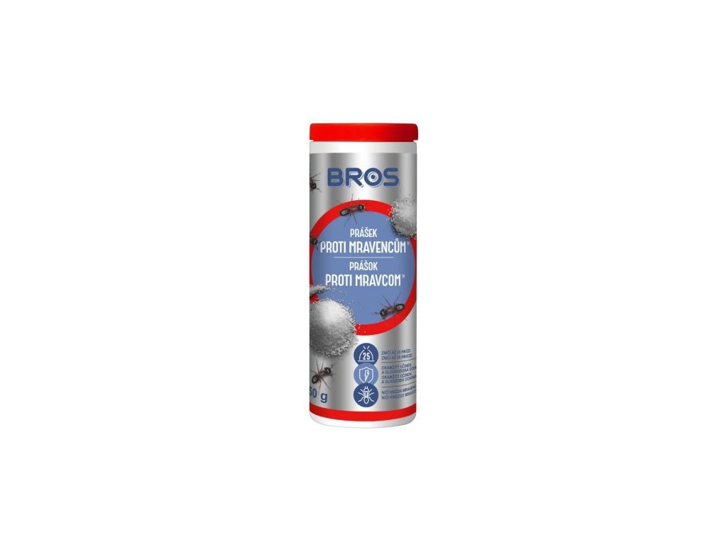 Prášok proti mravcom Bros je určený pre vnútorné priestory a tesné okolie domu, ako sú príjazdové cesty, terasy, záhradné chatky a pod. používať ako vodný roztok alebo prášok. Nasypte asi 2 čajové lyžičky na hniezdo. V prípade vodného roztoku rozpusťte 4 čajové lyžičky v 0,5l vody, premiešajte a nalejte na hniezdo.