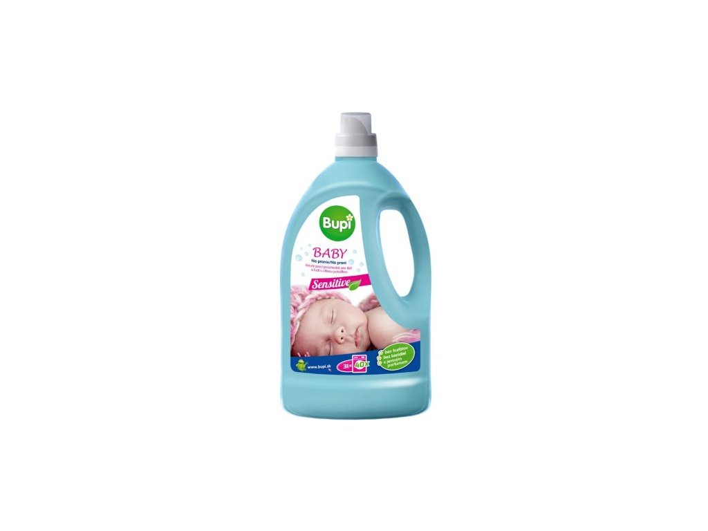Jemné a šetrné pranie s pracím gélom Bupi BABY Sensitive! Bupi BABY Sensitive je špeciálny tekutý prací prostriedok s obsahom mydla vyvinutý pre jemnú detskú pokožku a ľudí s citlivou pokožkou. Svojím šetrným zložením bez fosfátov, bielidiel a s jemným parfumom je vhodný na pranie bielizne detí i dospelých s veľmi citlivou pokožkou. Univerzálny prací prostriedok Bupi BABY Sensitive pre dokonale čistú bielizeň.