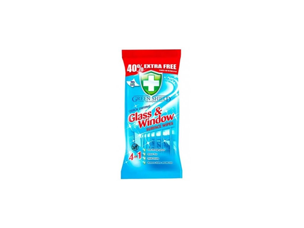 Vlhčené obrúsky na sklo a okná Greenshield. Účinne odstraňujú mastnotu a škvrny. Rýchlo a ľahko odstraňuje od prachu. Opatrne odlepte pásku a vytiahnite jeden alebo viac obrúskov a utrite povrch. Po použití lepku opäť zalepte, aby ste zabránili vyschnutiu. Použití obrúsok zahoďte do koša. Nepoužívajte na tkaniny a koberce. Nie je určené na osobnú potrebu.