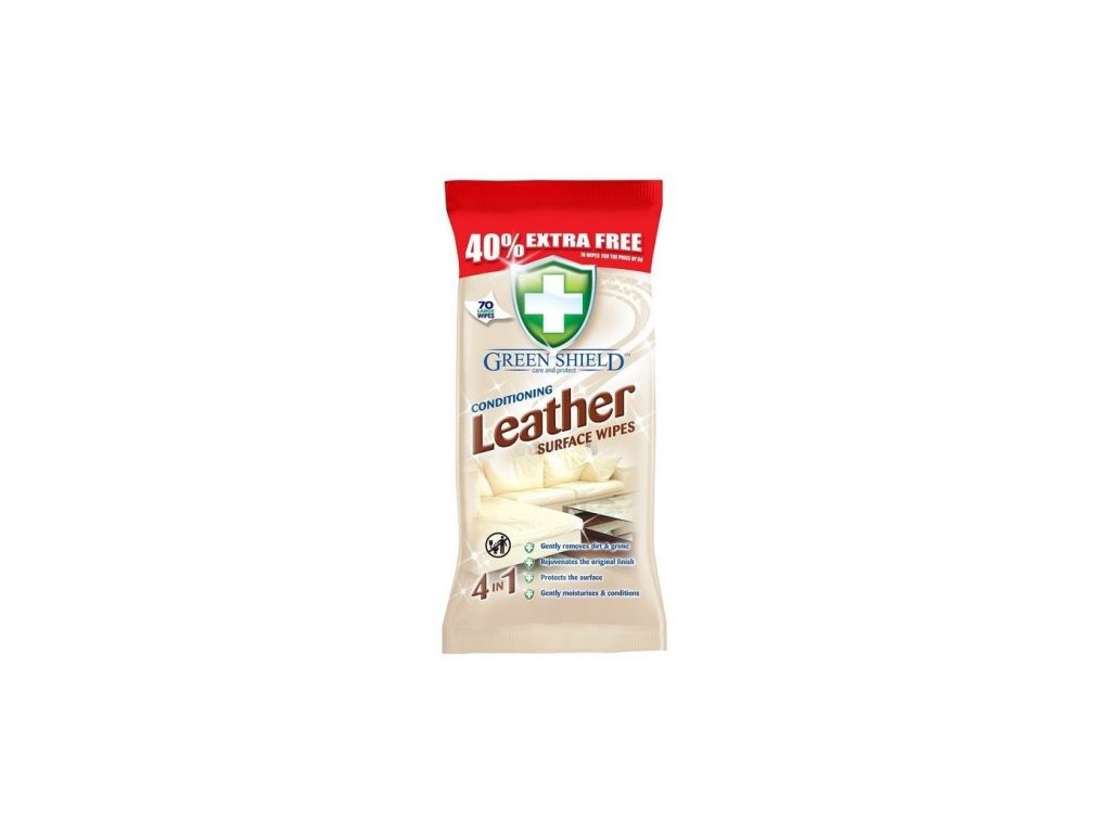 Vlhčené obrúsky na kožu a koženku Greenshield. Rýchlo schnúce obrúsky, ktoré využijete v domácnosti na materiály z kože a koženky. Opatrne odlepte pásku a vytiahnite jeden alebo viac obrúskov a utrite povrch. Po použití lepku opäť zalepte, aby ste zabránili vyschnutiu. Použití obrúsok zahoďte do koša. Nepoužívajte na tkaniny a koberce. Nevhodné na farbené, leštené a neošetrené drevo. Nie je určené na osobnú potrebu.