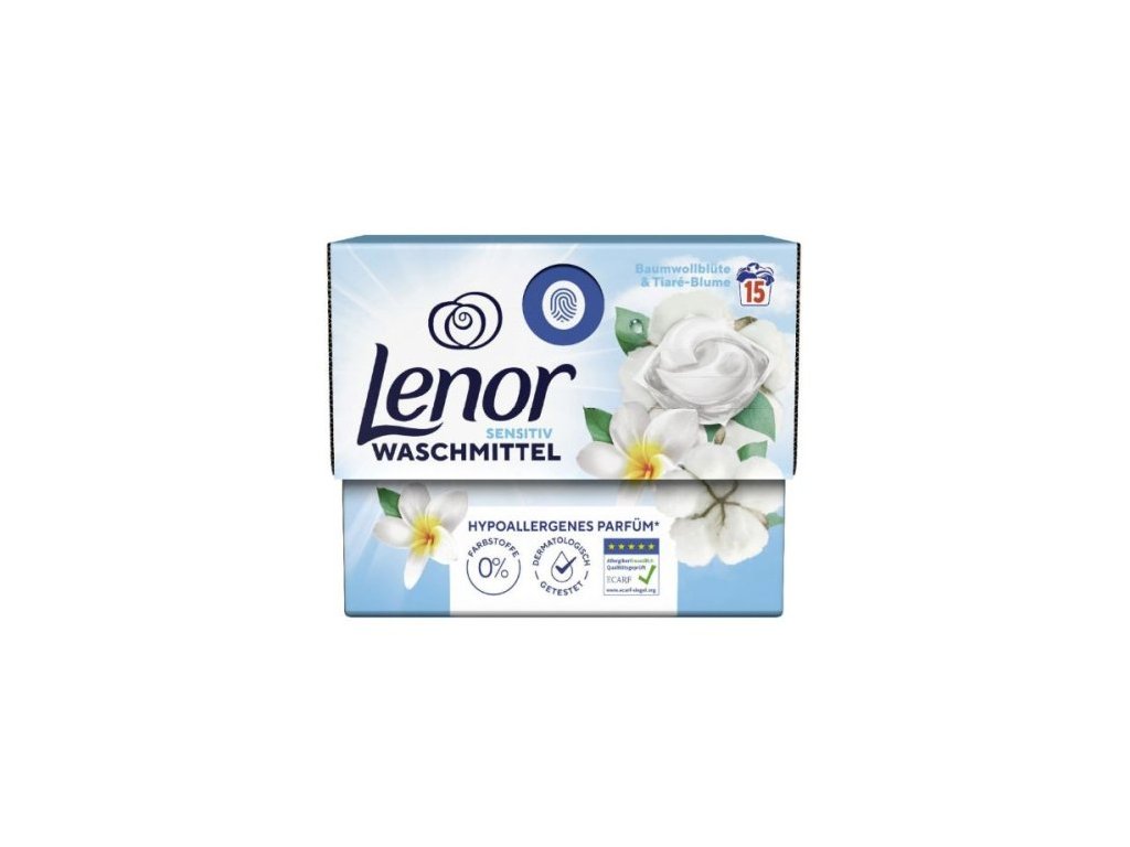 Pracie kapsuly Lenor Sensitive. Vďaka špeciálne vyvinutému zloženiu kapsuly minimalizujú riziko podráždenia pokožky, vďaka čomu sú ideálnou voľbou pre deti a osoby s citlivou pokožkou. Každá kapsula kombinuje silu pracieho prostriedku a aviváže a poskytuje komplexnú starostlivosť o vašu bielizeň. Vďaka praktickému formátu sa neuveriteľne ľahko používajú – stačí vložiť jednu kapsulu do práčky a vychutnať si vynikajúce výsledky prania. S vôňou kvetu bavlníka a kvetu tiaré. Dermatologicky testované.