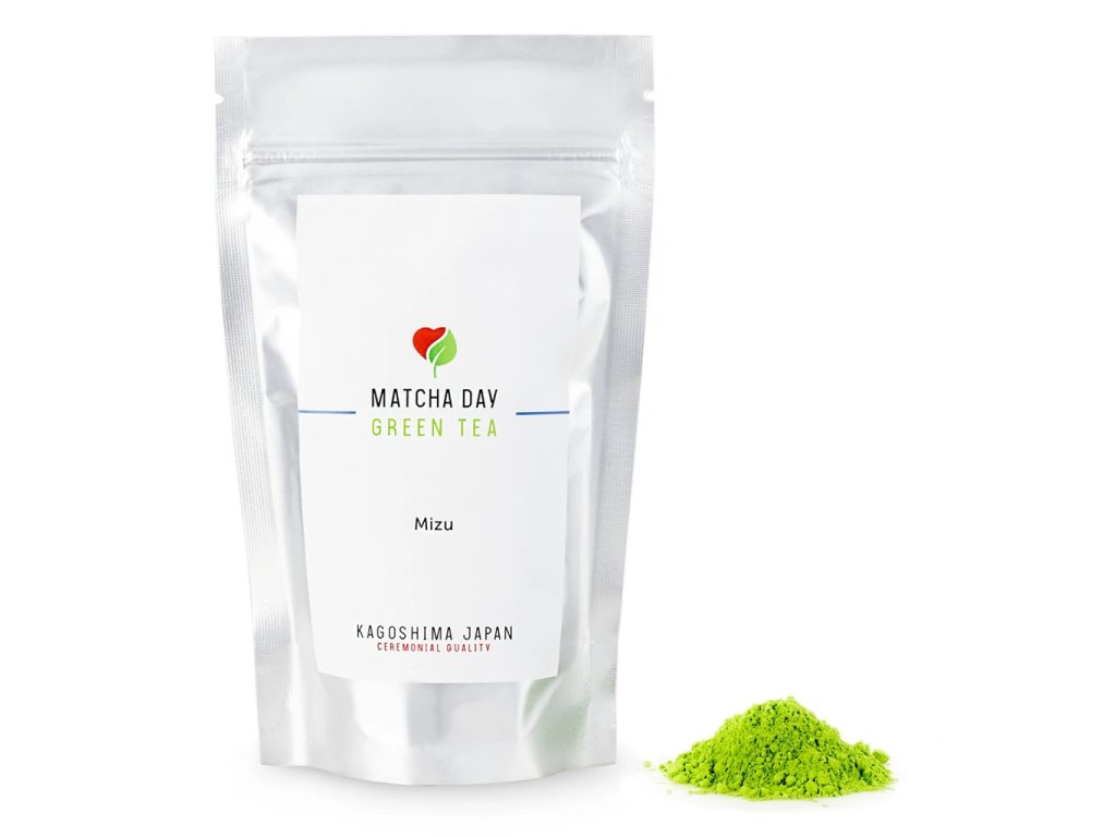 Prekvapí vás perfektnou chuťou, sýto zelenou farbou a nezameniteľnou arómou, ktorú môžete zakúsiť len pri originálnom čaji Matcha. Variant Mizu je v pomere cena / výkon veľmi kvalitný produkt, plný účinných látok. Či už ste milovníkom čajových rituálov, alebo len hľadáte svoju dennú dávku energie v tej najčistejšej forme, Matcha Day Mizu vás nikdy nesklame. Variant Mizu je 100% organický produkt, má BIO certifikáciu a bol pestovaný bez pesticídov a chemických hnojív.