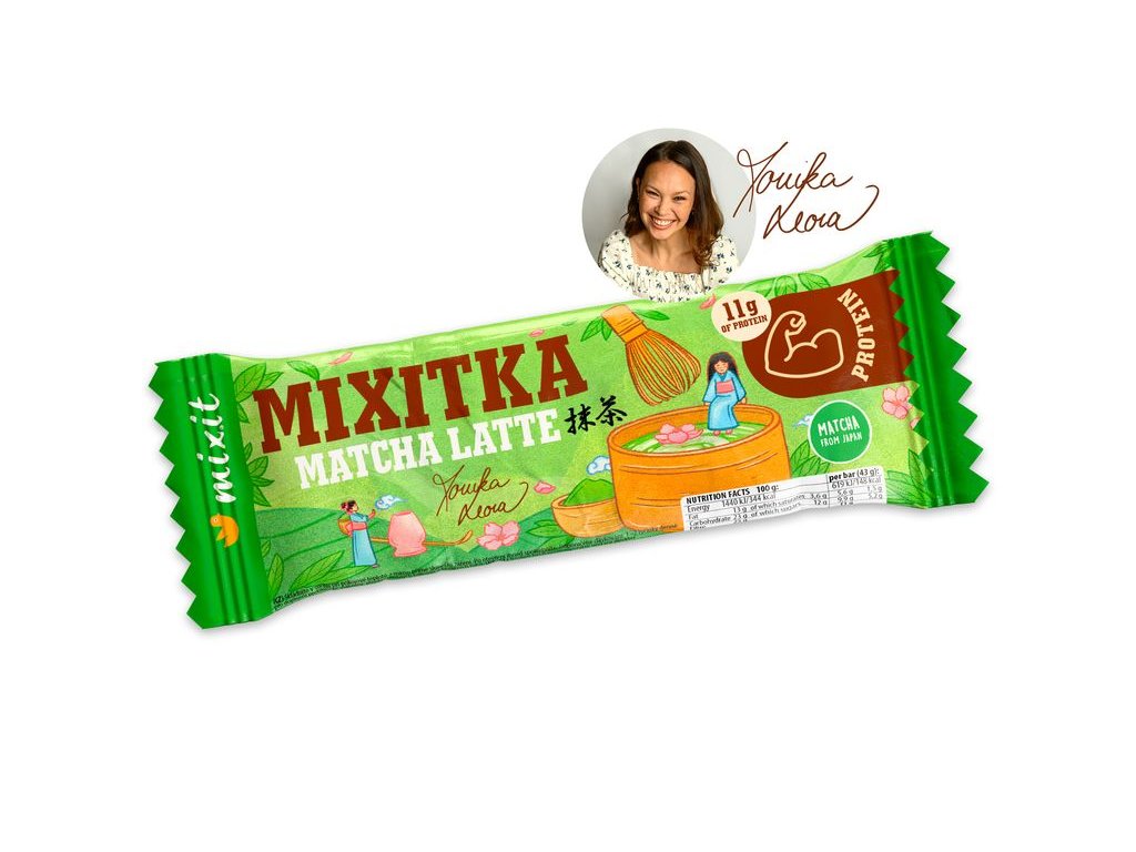 Keď sa mixuje japonská precíznosť matchy, benefity orechov, kvalitný proteín a prebiotiká, vznikne malý zen do vrecka. Poďte sa presvedčiť, prečo matcha dobýja svet. Zelený čaj matcha je bohatý na antioxidanty, ktoré chránia vaše bunky ako neviditeľní ninjovia. Táto čajová legenda z Japonska je nabitá aj vitamínmi a L-theanínom. Pomôže uvoľniť vaše nervy, zatiaľ čo kofeín v nej naštartuje mozog a pridáva pozvoľnú dávku energie. Keď si nabudúce poviete, že by ste "si niečo dali", majte na pamäti, že svet už má lepšie riešenie než obyčajné müsli tyčinky. Matcha latte Mixitka totiž obsahuje nielen tak potrebné prebiotiká, ale aj výdatnú porciu bielkovín, čo z nej robí skvelú desiatu, ktorá pomôže zahnať nielen chuť na sladké, ale aj hlad počas dňa.