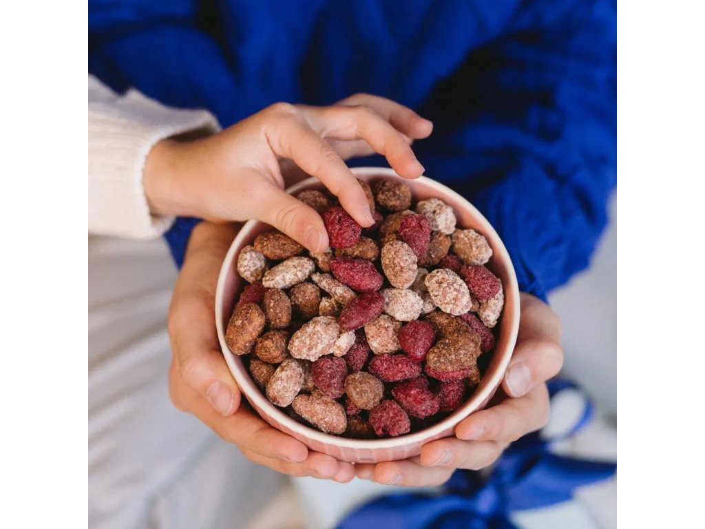 Radi by ste niečo sladké, ale cukrovinky už vám v polovici decembra lezú hore krkom a čokoládu ďobete každé ráno z adventného kalendára? Nebojte sa. Aj pre túto zdanlivo bezvýchodiskovú situáciu sme našli riešenie! Vzali sme totiž jemné krémové mandle a schovali ich do troch druhov cukrových kabátikov. Vznikla tak vykotúľaná kombinácia chutí, ktorá nasadí korunu každému vianočnému stolu. Vyberať môžete z nestarnúcej škorice, decentného marcipánu, alebo maliny priostrenej balzamikom. Nemôžeme vám ale povedať, ktorá z príchutí je najlepšia. Všetky od nás totiž dostali plný počet bodov!