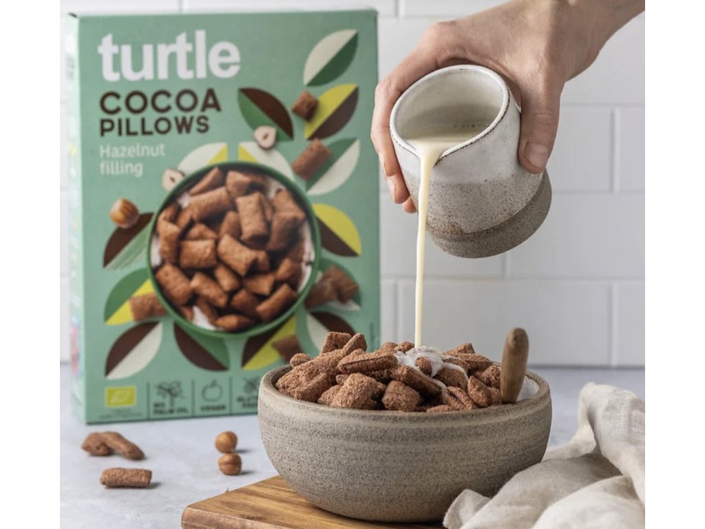 Zabudnite na presladené raňajkové cereálie z detstva. Turtle Cocoa Pillows predstavujú dospelú verziu obľúbených "vankúšikov", ktoré spájajú intenzívne bio kakao s krémovou náplňou z lieskových orieškov. Tento produkt je navrhnutý pre gurmánov, ktorí odmietajú robiť kompromisy medzi fantastickou chuťou a čistým zložením.