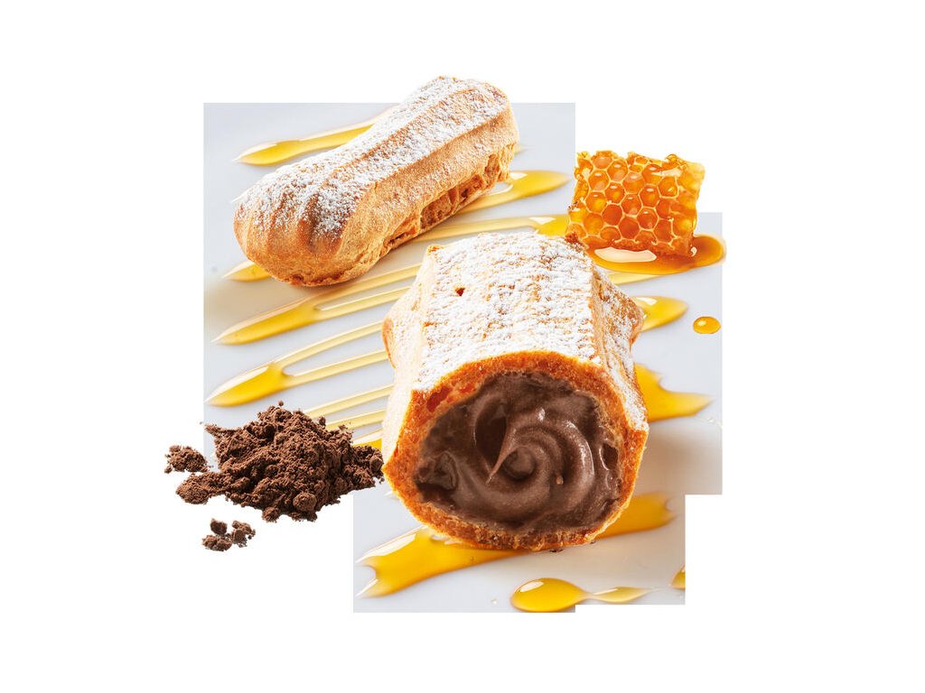 Eclairs s kakaom sú originálne zákusky na spôsob mini veterníčkov z odpaľovaného cesta, plneného lahodným kakaovým krémom. Na ich výrobu sa používajú tie najkvalitnejšie suroviny bez použitia konzervačných látok a farbív. Vyskúšajte ich a nikdy neskončíte len pri jednej.