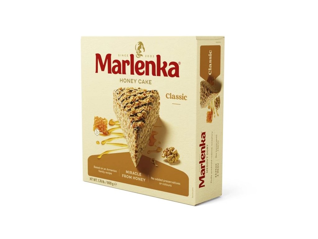 Marlenka je tradičná česká značka medových a orechových koláčov, ktorá sa preslávila unikátnou receptúrou a prirodzenými ingredienciami.