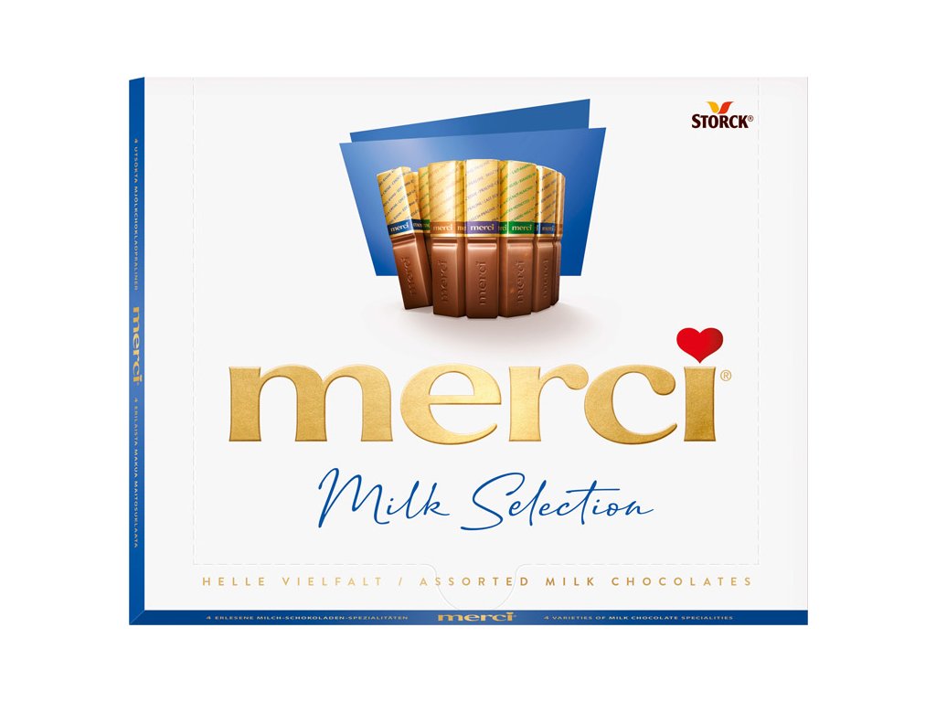Zloženie: cukor, kakaové maslo, sušené plnotučné mlieko, lieskovce (7,6 %), kakaová hmota, rastlinné tuky (palmový, bambucký), laktóza, sušený cmar, sušené odtučnené mlieko, mliečny tuk, sekané mandle (1,3 %), dextróza, emulgátor: lecitíny (sója), odtučnené kakao, aróma, jedlá soľ. Jemná mliečna čokoláda s lieskovo- orieškovou náplňou: kakaová sušina najmenej 32 %. Jemná mliečna čokoláda: kakaová sušina najmenej 32 %. Jemná mliečna čokoláda s kúskami lieskovcov a mandlí: kakaová sušina najmenej 32 %. Mliečna čokoláda s kakaovou náplňou s lieskovcovou príchuťou: kakaová sušina najmenej 32 %. Všetky druhy môžu tiež obsahovať stopy lieskovcov, mandlí, arašidov, iných orechov a vajec.