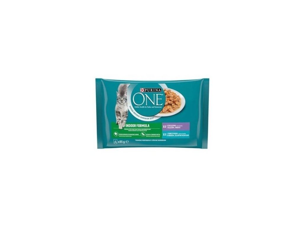 Purina One Indoor Formula kapsička mačka 4x85g - Teľacie,tuniak