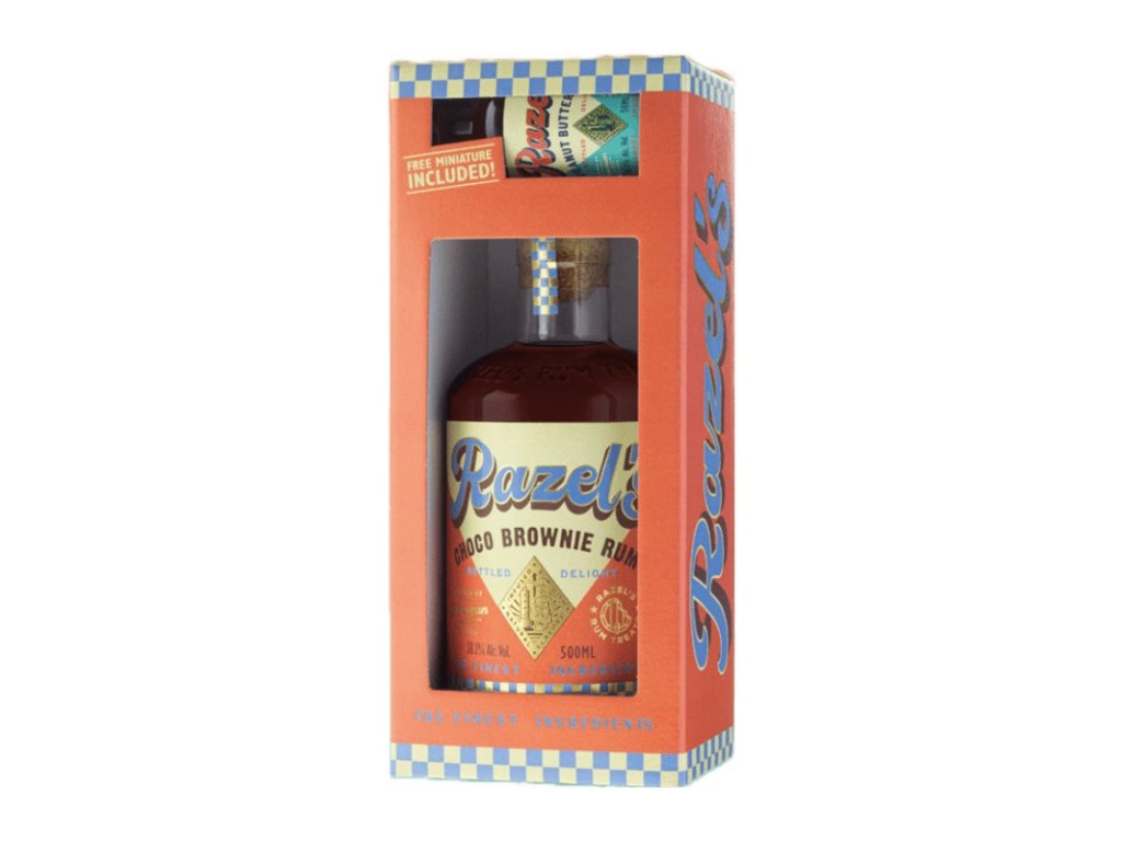 Pre milovníkov sladkého a originálneho zážitku je tu darčeková sada s Razel's Choco Brownie Rumom a jeho miniatúrou Razel's Peanut Butter Rumom.