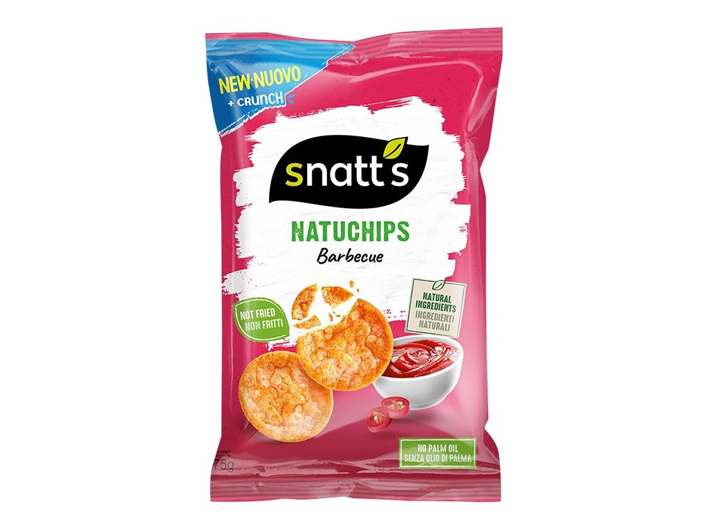 Autentická dymová chuť v odľahčenom bezlepkovom vydaní. Natuchips Barbecue prinášajú zážitok z letnej grilovačky v každom jednom lupienku. Na rozdiel od klasických BBQ chipsov, ktoré bývajú presýtené umelými arómami a tukom, stavil Snatt’s na šetrné pečenie a 100 % prírodné koreniny.
