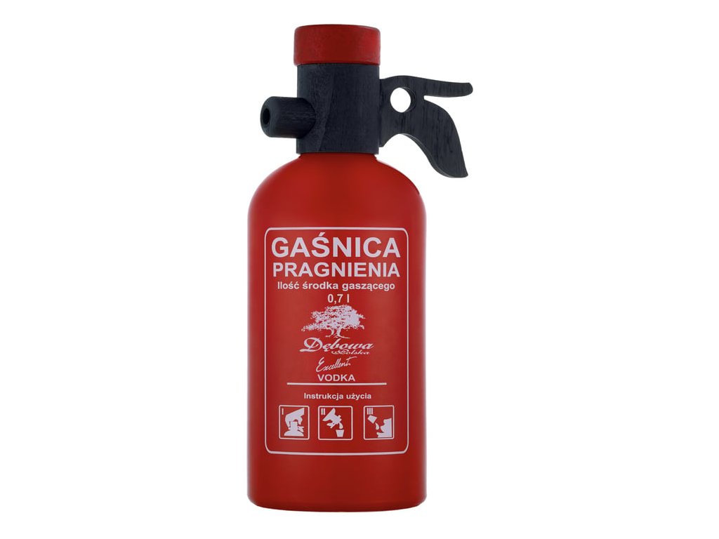 Drevená darčeková fľaša v tvare hasiaceho prístroja ukrýva vysokokvalitnú poľskú vodku Debowa Excellent – jemnú chuťou aj vôňou. Táto gurmánska vodka sa skladá z rastlinných vodno-alkoholových roztokov a je garanciou sofistikovaného chuťového zážitku.