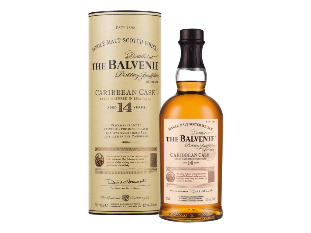The Balvenie 14 ročná Caribbean Cask je výnimočná single malt škótska whisky pochádzajúca z oblasti Speyside. Počas 14 rokov zrela v tradičných dubových sudoch, následne bola preložená do sudov, ktoré predtým obsahovali karibský rum, čo jej dodáva jedinečný charakter.