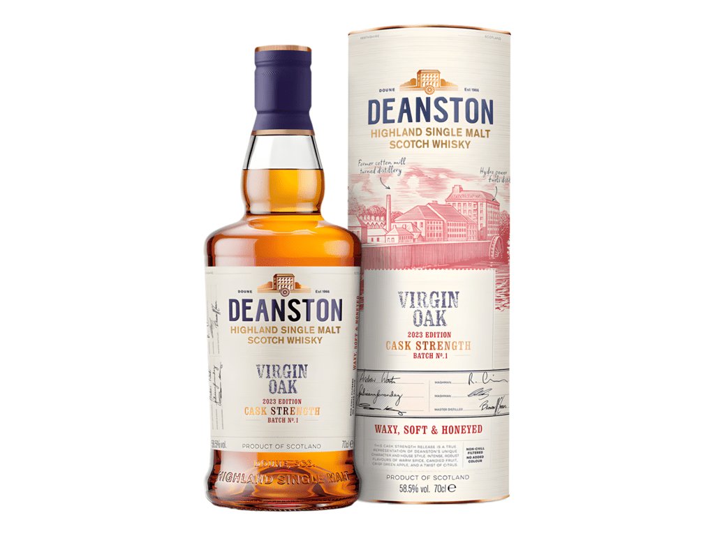 Táto výnimočná whisky Deanston Virgin Oak 2023 z liehovaru Deanston prichádza v prvej edícii ako Virgin Oak Cask Strength – nefiltrovaná, bez pridaného farbiva a s pôsobivou silou 58,5 %.