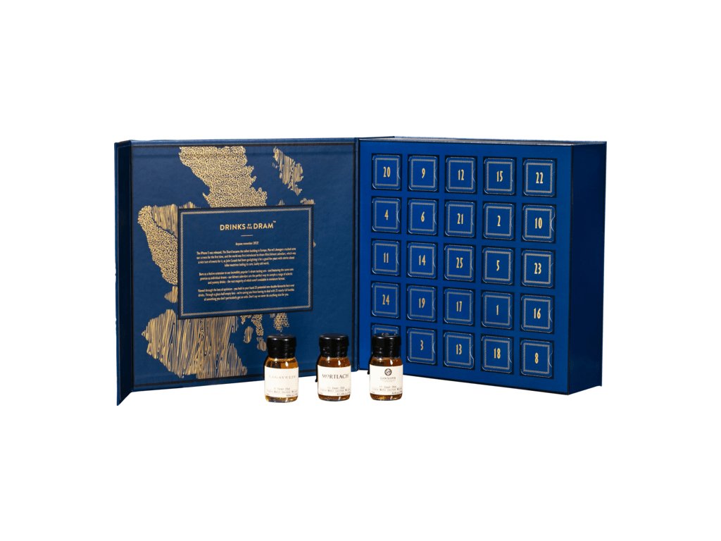Drinks by The Dram The Scotch Whisky Advent Calendar 2025 je ideálny darček pre každého milovníka škótskej whisky. V elegantnom balení sa ukrýva 25 voskom zapečatených vzoriek s objemom 0,03 l, pričom každý deň od 1. do 25. decembra môžete ochutnať iný klenot zo Škótska.