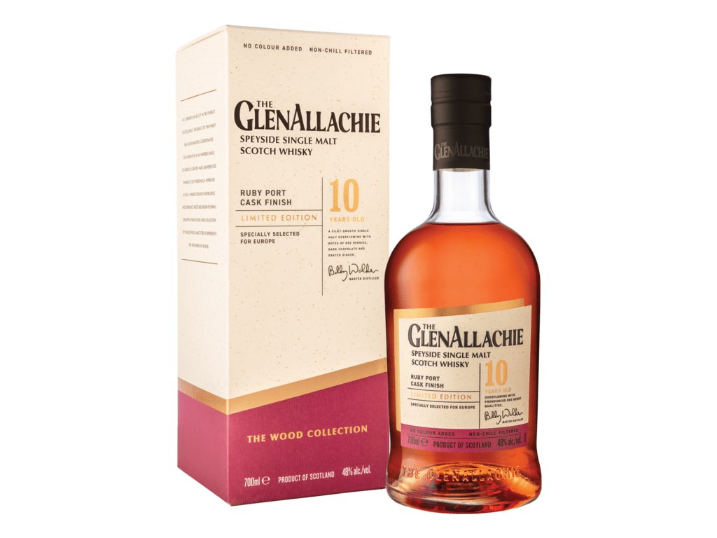 GlenAllachie 10 ročná Ruby Port Cask Finish je jedinečný single malt whisky zo škótskej oblasti Speyside. Tento destilát najprv zreje viac ako osem rokov v sudoch z amerického duba, kde získava klasické vanilkové a korenisté tóny. Následne je preložený do sudov po rubínovom portskom víne, čo mu dodáva bohaté ovocné chute a výraznú hĺbku.