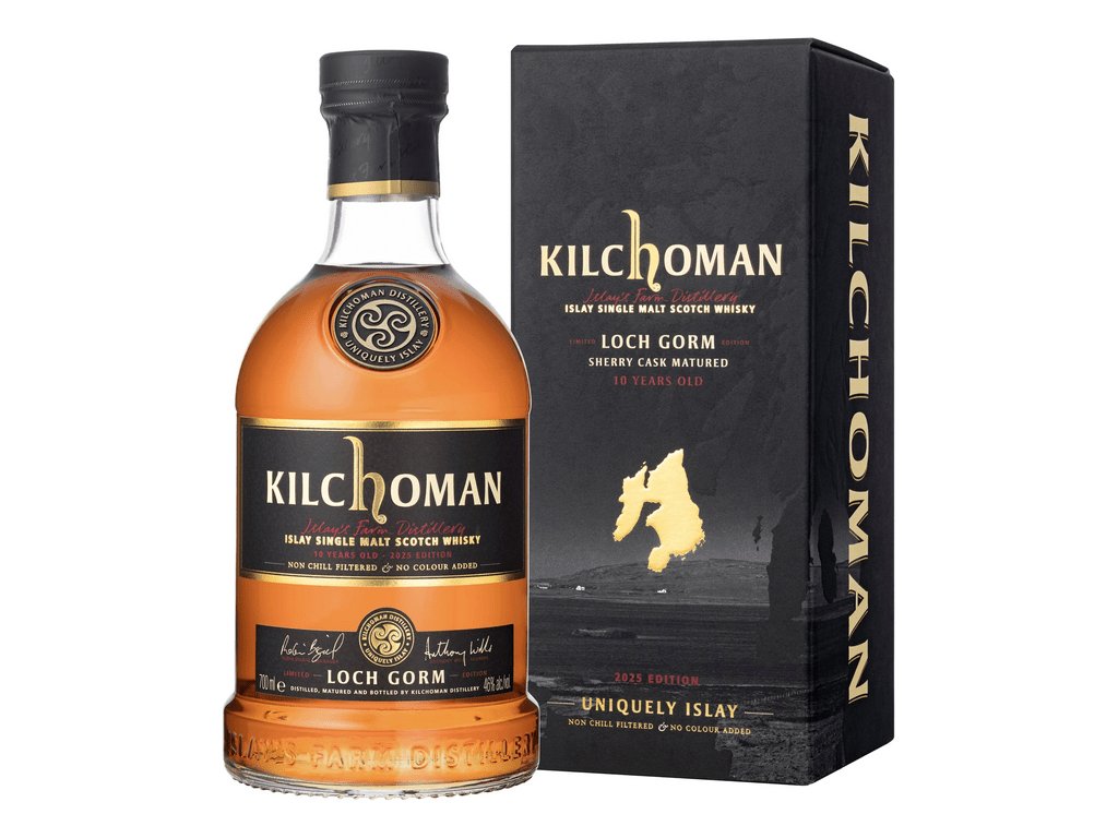 Kilchoman Loch Gorm 2025 – ročník 10-ročnej whisky, ktorá zrela iba ex‑sherry Oloroso sudoch, zároveň oslavuje 20. výročie destilérie Kilchoman na ostrove Islay. Nápoj dostal názov podľa najväčšieho sladkovodného jazera Loch Gorm pri liehovare, ktoré je známe svojou temnou, rašelinou sfarbenou vodou – farba whisky odzrkadľuje jeho hlboký medeno-bordový tón.