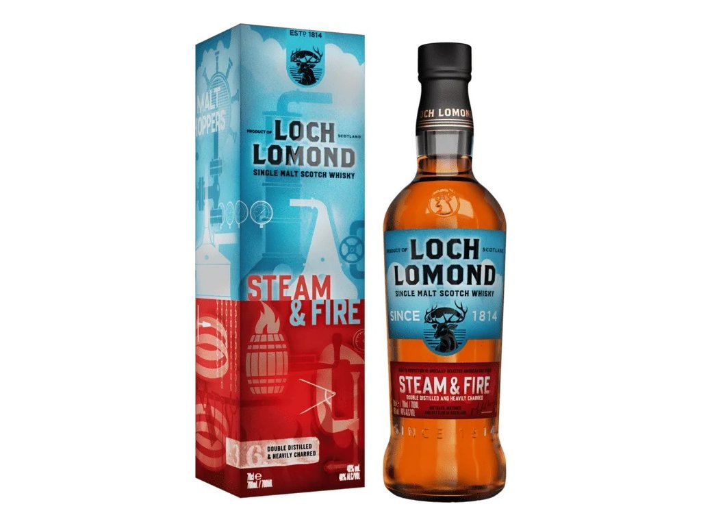 Táto pozoruhodná single malt whisky Loch Lomond Steam & Fire je vyrobená s vášňou a inováciou, je dokončená v silne zuhoľnatených sudoch z amerického duba, čo prináša tóny množstva roztopeného hnedého cukru, ako aj bohatú maslovú chuť s tónmi pomaranča a horkej čokolády.