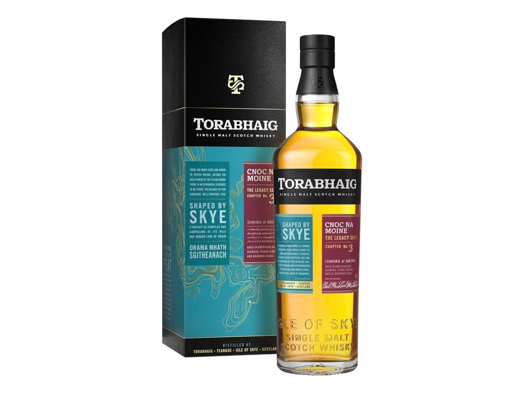 Torabhaig Cnoc Na Moine, tretia verzia zo série Legacy, plnená do fliaš s obsahom 46 % bez farbenia a chladiacej filtrácie.