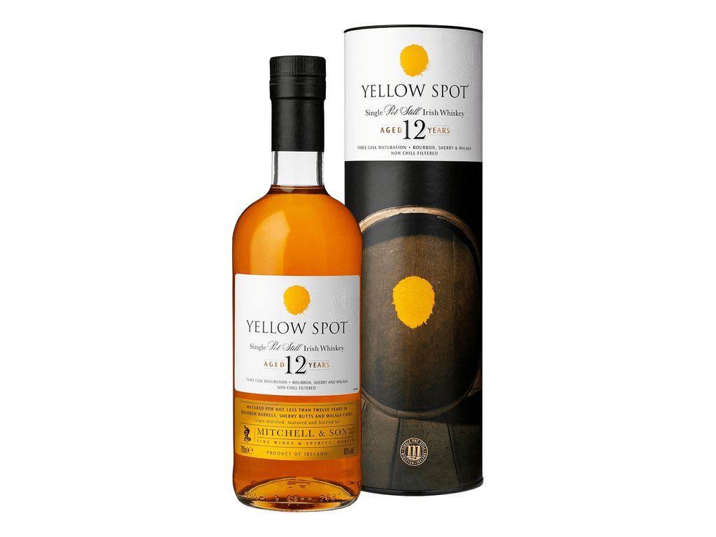 Veľký brat kultovej Green Spot whiskey, to je Yellow Spot 12 ročná. Dozrieva v sudoch troch typov: od bourbonu, španielskeho sherry a od španielskej malagy.